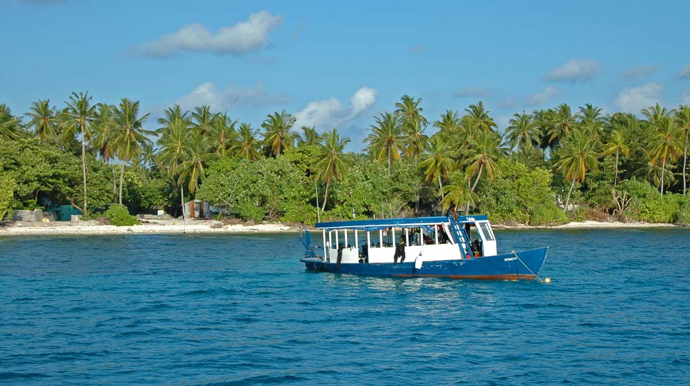 the dhoni that followed us around for two weeks, serving as our dive platform