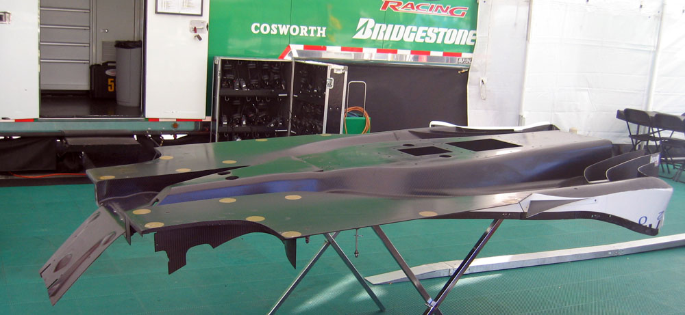 Aerodynamically sculpted underbody. I don't know about this class of car, but Indy style cars generate over 1G of downforce at high speed. |