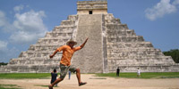 The big Mayan draw in the Yucatan is the vast ruin of Chichen Itza. The beautiful restored pyramid: that's here. The gigantic ballgame court: that's here. The observatory: it's around the corner. These popular sites definitely draw the crowds going by the size of the tourbus parking area and the fancy welcome area. We were actually grateful for all the tourist services as we hadn't found a good place to stop for lunch on the long drive out. The ruins here are generally nicely restored and the site is very impressive. It was nice to be there late in the day and enjoy the colors coming out as the sun started to sink and the tourbus crowds headed back to Cancun.