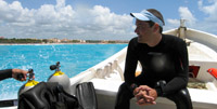 For our first ocean dives, we took a morning ferry to Cozumel and hopped a dive boat down to the southern end of the island. We met with a bit of rain and a group of really poor divers. Between the two, I'll say that the Cozumel reef is nice, but we really didn't get a lot out of it. Back on the mainland, we had a somewhat better time diving off Playa del Carmen. The dive shop was close enough to the shore that we just walked through town in our gear to the beach. On the first dive, I saw my first bull sharks and then sunk to a depth that sent my head spinning. A few days later, we did a decent wreck and then a nice drift through a wavy reef full of fish.