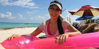 When in town, we spent most of our time either on the beach or eating. It's a little hot and humid here this time of year, so town and beach were pretty quiet. Interestingly, quite a few of the other tourists actually seemed to be from around Mexico. We like a lot of quiet, so we pulled our usual trick and bought a pair of floaties so we could hide from the hawkers and enjoy our naps out on the waves. There usually was a bit of current pushing us towards Belize so we'd tie our toe up to a little buoy out front of our favorite section of beach.
